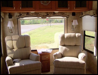 After our trip to the “high end” coin laundry, we decided to stop at the Shady Pines RV place. They had a couple new HitchHikers there and we were just curious at the improvements, if any, that had been made. They no longer make the kind we have, the HitchHiker II, LS…There was no floor plan that we were in love with. They have made the bathrooms much bigger, with the sink, shower and toilet all together …NOT in OUR camper, thank you. First of all, it takes up way too much room and makes your bedroom area makes you feel like you’re sleeping in a closet…It was fun to look, though.and I took a couple photos of campers we will never have…