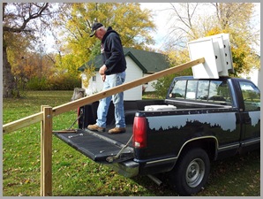 So, this morning it was already 63 degrees when we walked…Since the weather was warm, McGyver decided to get some scaffolding up on our kitchen roof so he could re-stick some shingles that had blown off in the big winds we have had this Fall…Our friend, Jim Otto, was the owner of the scaffolding, and thank the Lord he stayed to help Dennis get that heavy equipment up on the roof…Awwww, I coulda done it …NOT!